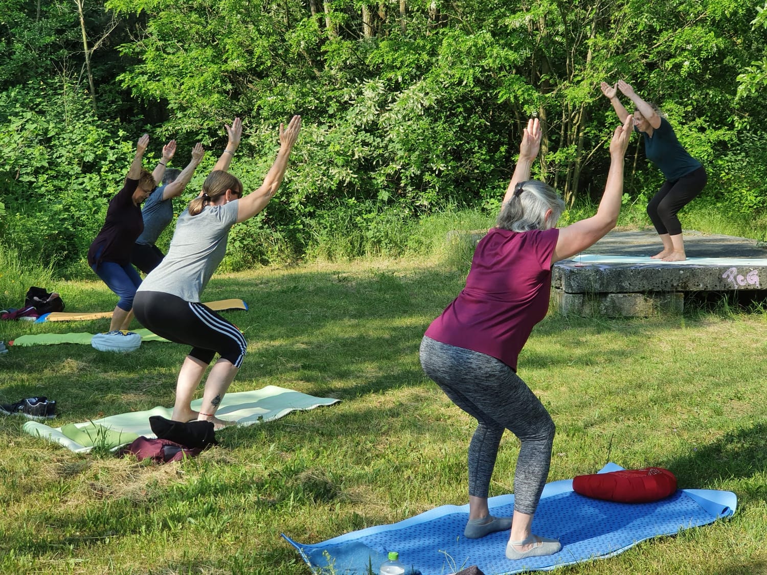 Zum Aufwärmen wird z.B. der Sonnengruß durchgeführt.