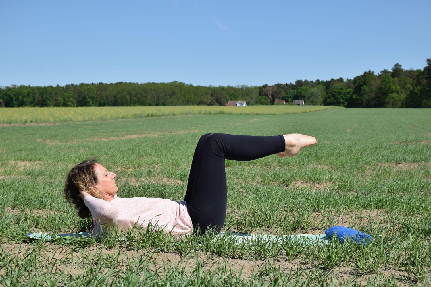 Die Pilatesstunde beginnt liegend mit dem Wahrnehmen des Körpers.